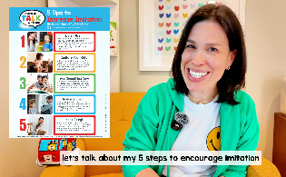 Use my 5 Steps to Increase Imitation (repeating or doing what you do) to help your child say new words (hint: listen first!)